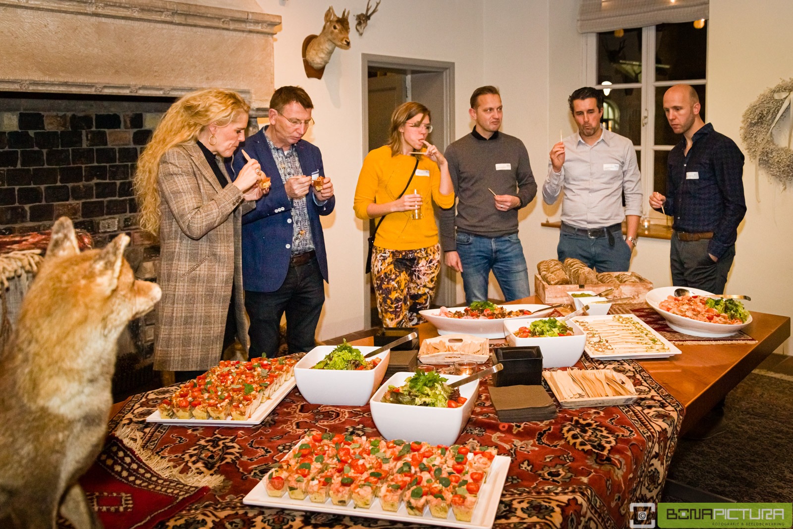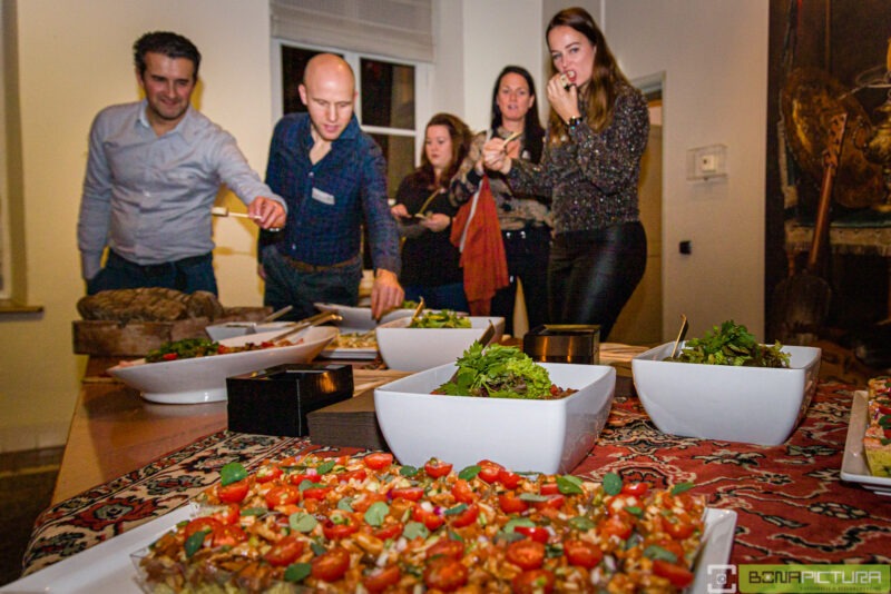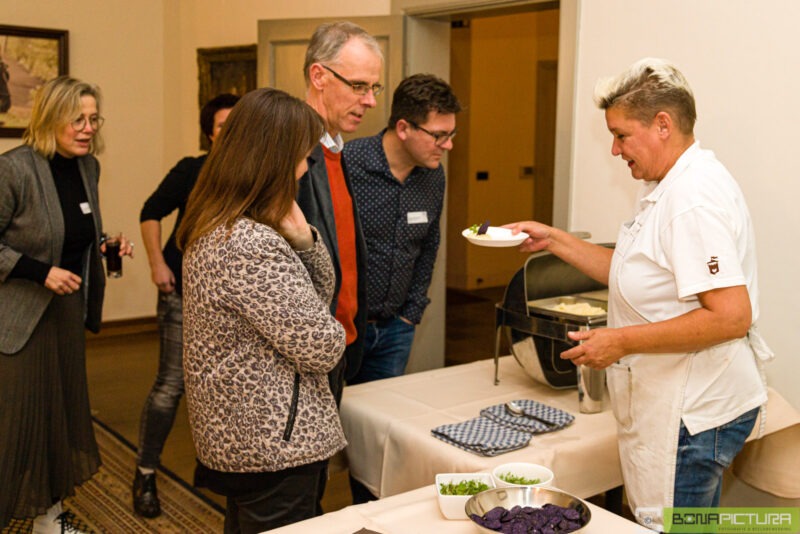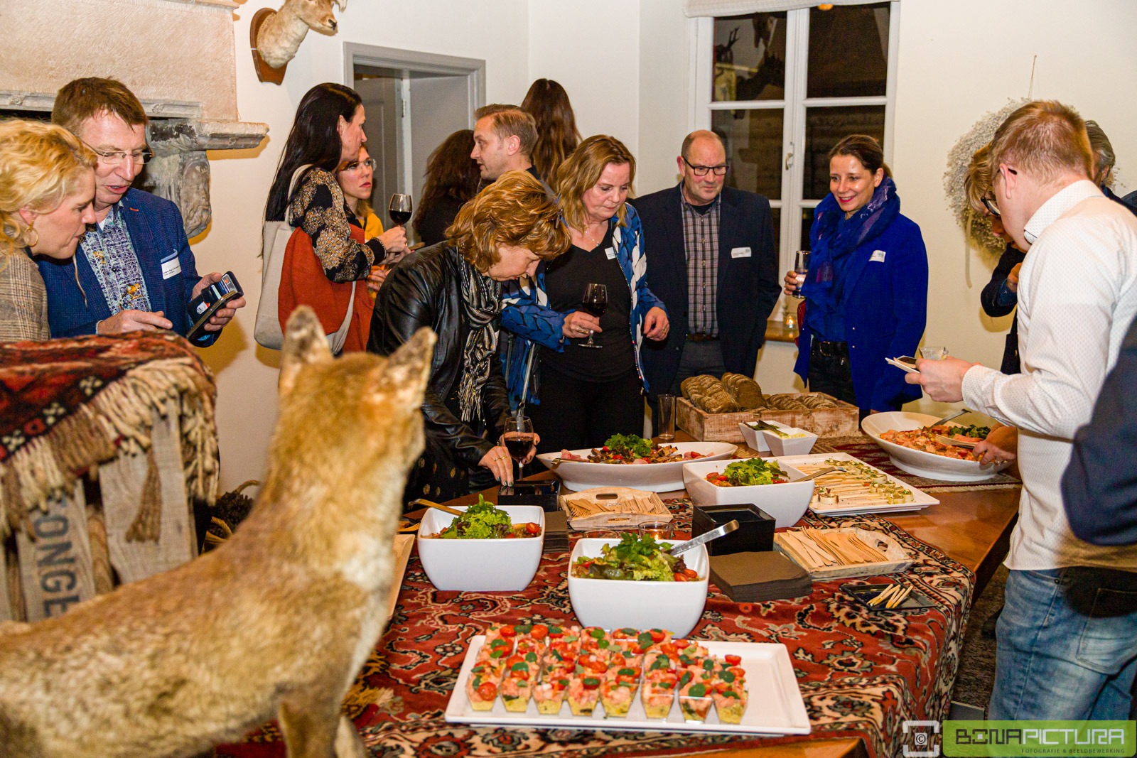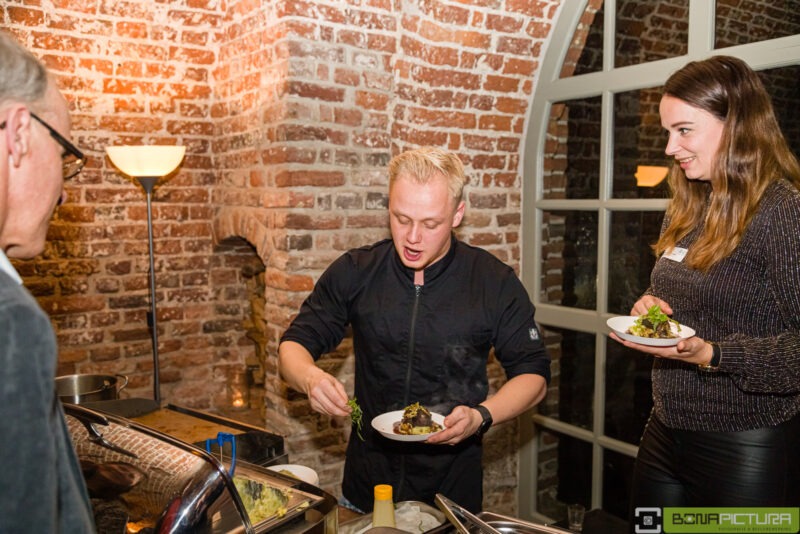 In de diverse kamers van het kasteel werden diverse (wild)gerechten geserveerd, variërend van een wild- of pompoensoepje, een koud buffet met o.a. wilde zalm, een puree met wild ragout en een spruitjes stamppot met herten sukade, waarbij de leden ruimschoots in de gelegenheid waren met elkaar nieuwtjes uit te wisselen en te netwerken.