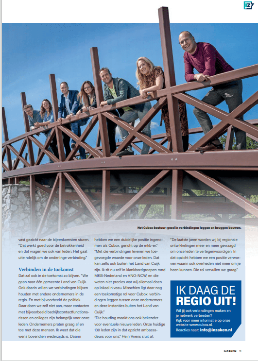 In de uitgave van InZaken van juni 2021 staat een bijzonder artikel over 25 jaar Cubox en het leggen van verbindingen in het Land van Cuijk…..